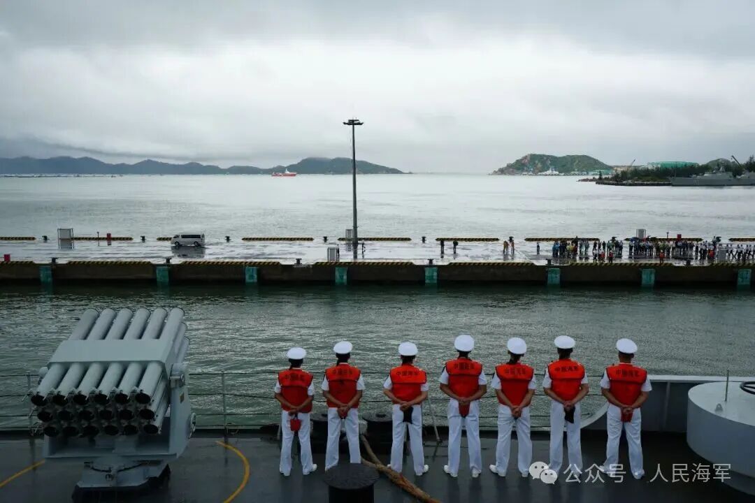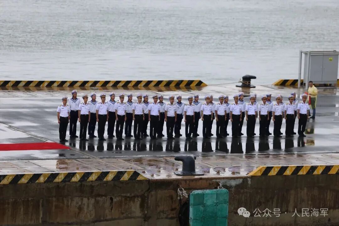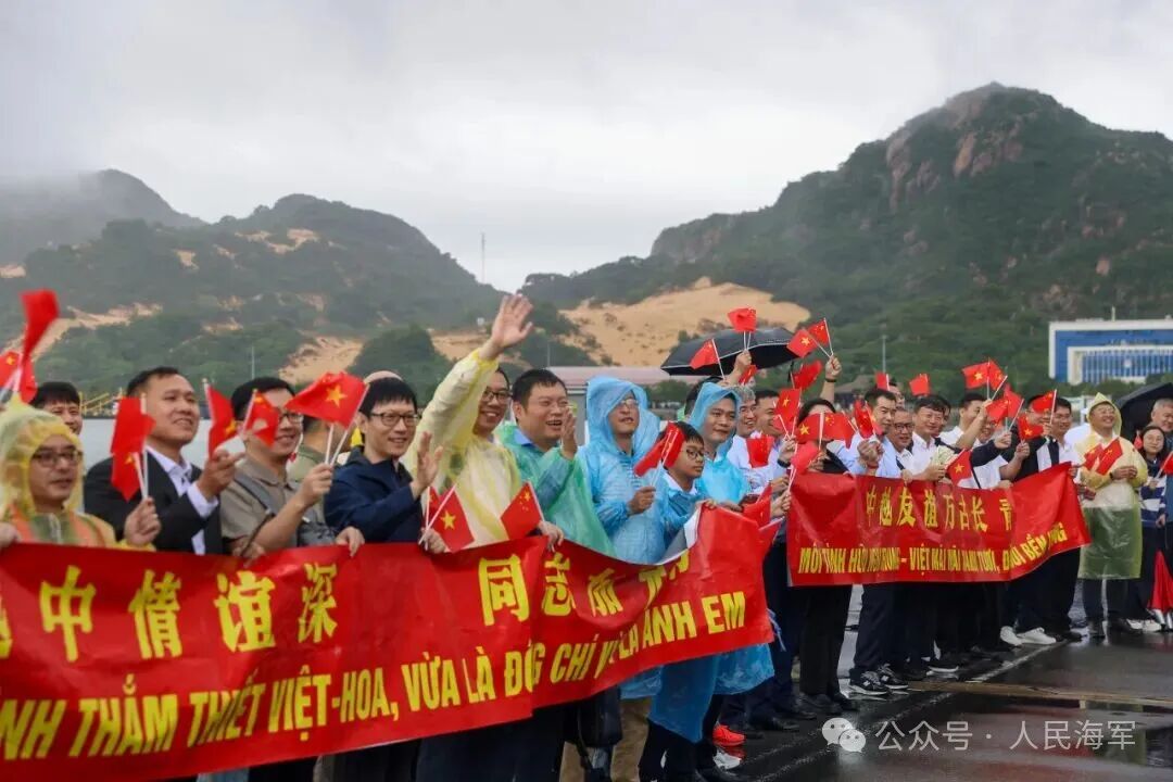 当地时间4时许,中国海军长白山舰、郑和舰和“向前进1号”船抵达预定海域,与越南海军丁先皇号护卫舰汇合,组成编队驶向金兰港。10时许,编队靠泊金兰港码头。中国驻越使领馆工作人员,当地华人华侨代表,越南海军第四区官兵等100余人到码头迎接。来自海军工程大学和海军航空大学的学员在甲板分区列队,向欢迎人群致意。