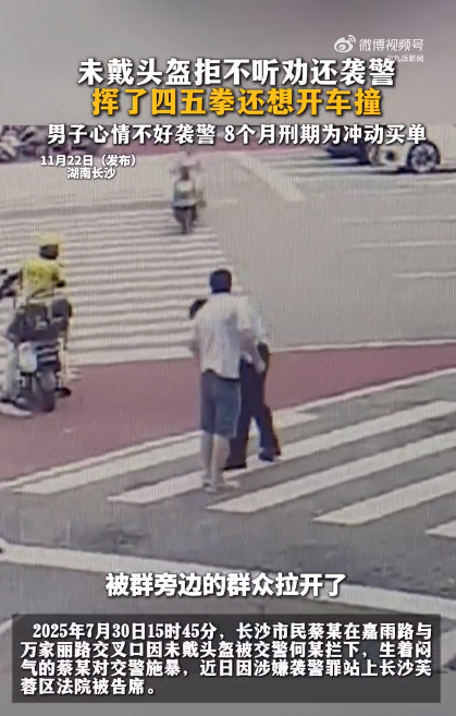 迅速赶来的其他民警合力将蔡某控制。最终,蔡某被判处8个月的有期徒刑。