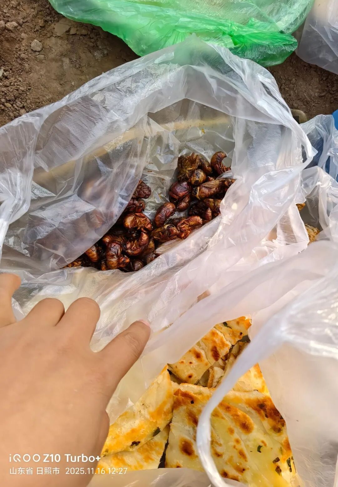 河南籍工人 王全保: 我们是12个人,从河南过来到这边干活,第一天在大姨家附近干活,大姨看到我们吃得比较凑合,大姨开始给我们送吃的,连着好几天。送的有红薯、芋头、虾米,最后送了“知了猴”,这个东西在家也不一定能吃到,这说明大姨真的把我们当孩子看待。