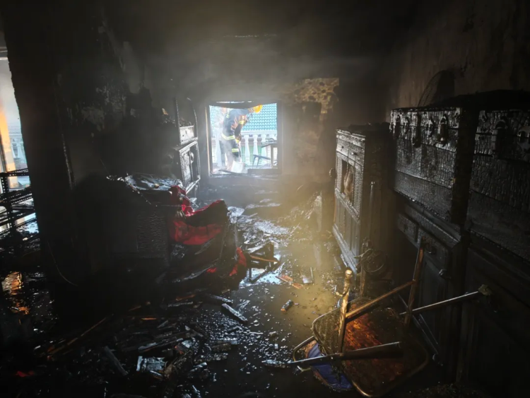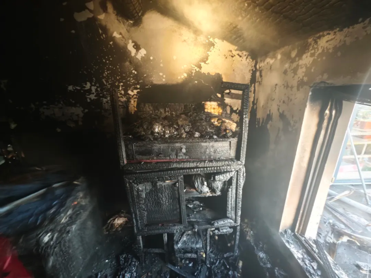 但屋内被烧得一片狼藉